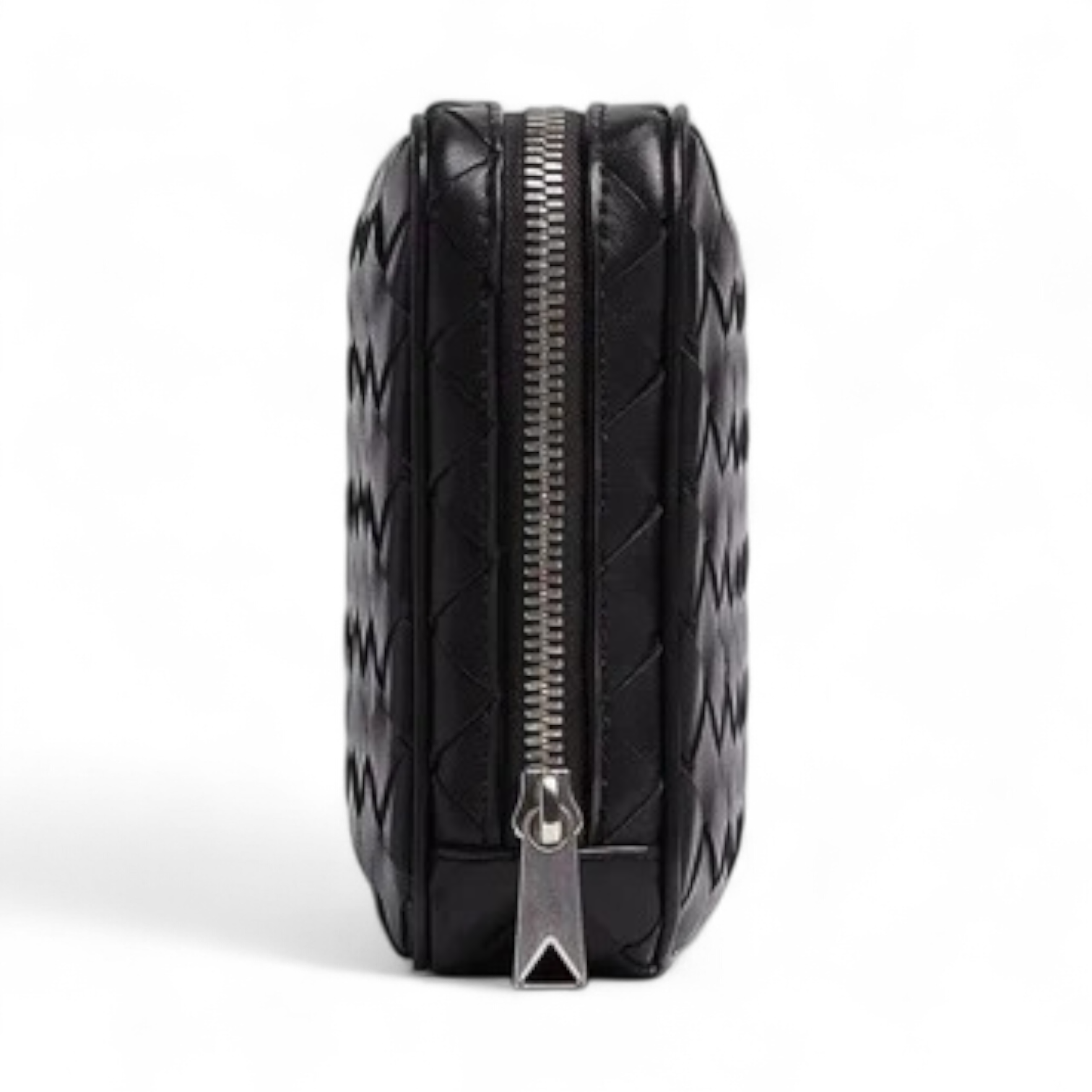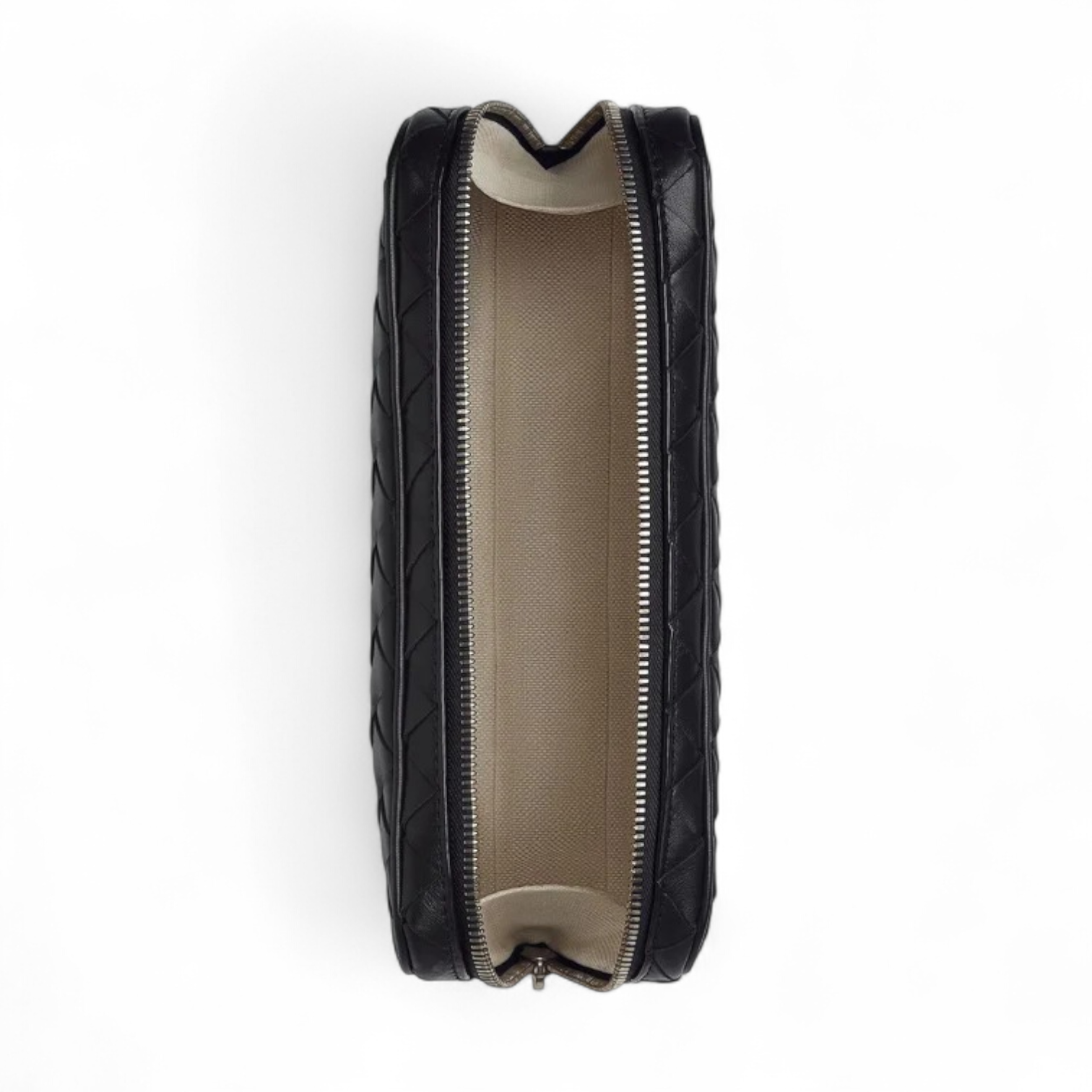 BOTTEGA VENETA INTRECCIATO MEDIUM BLACK ZIPPED ORGANIZING POUCH