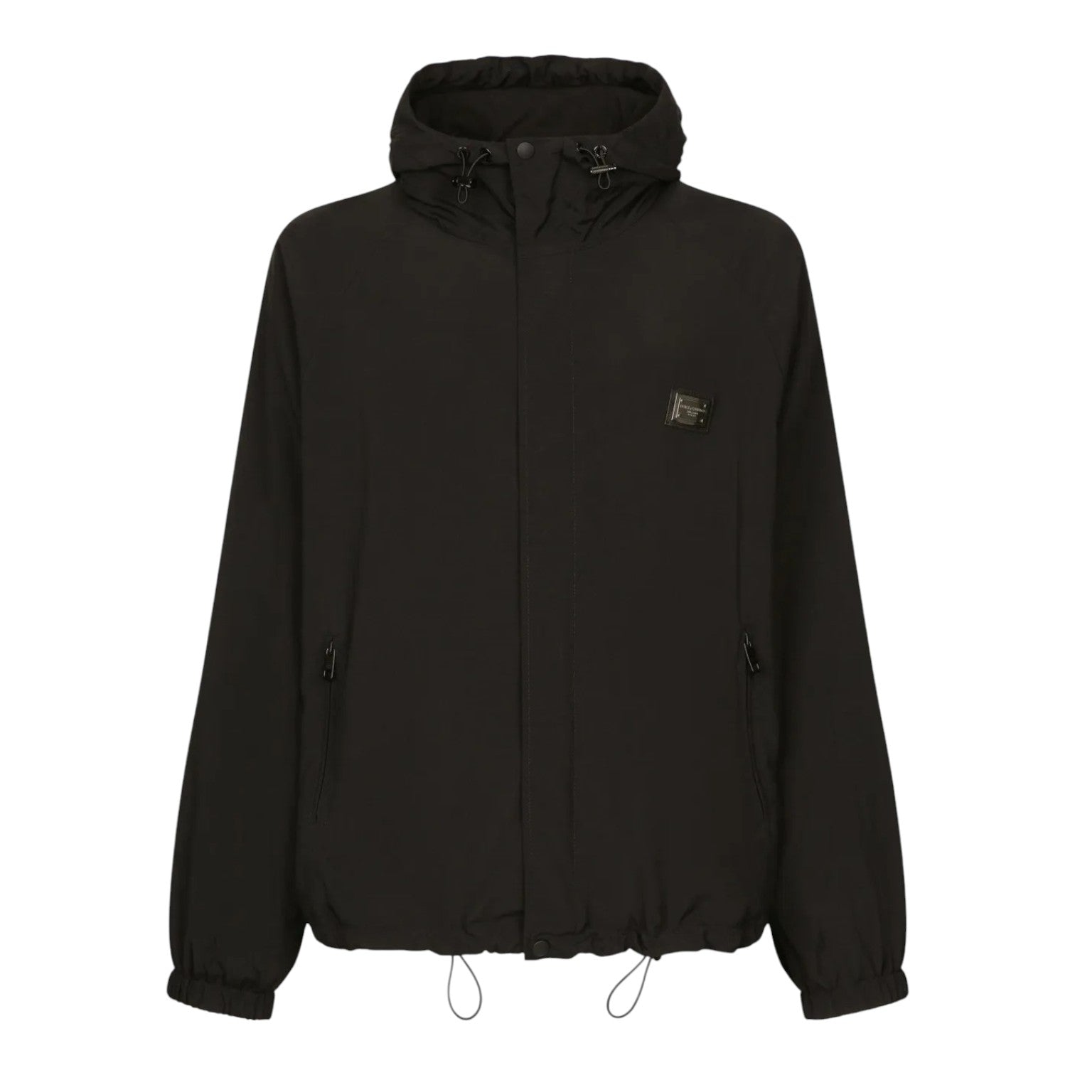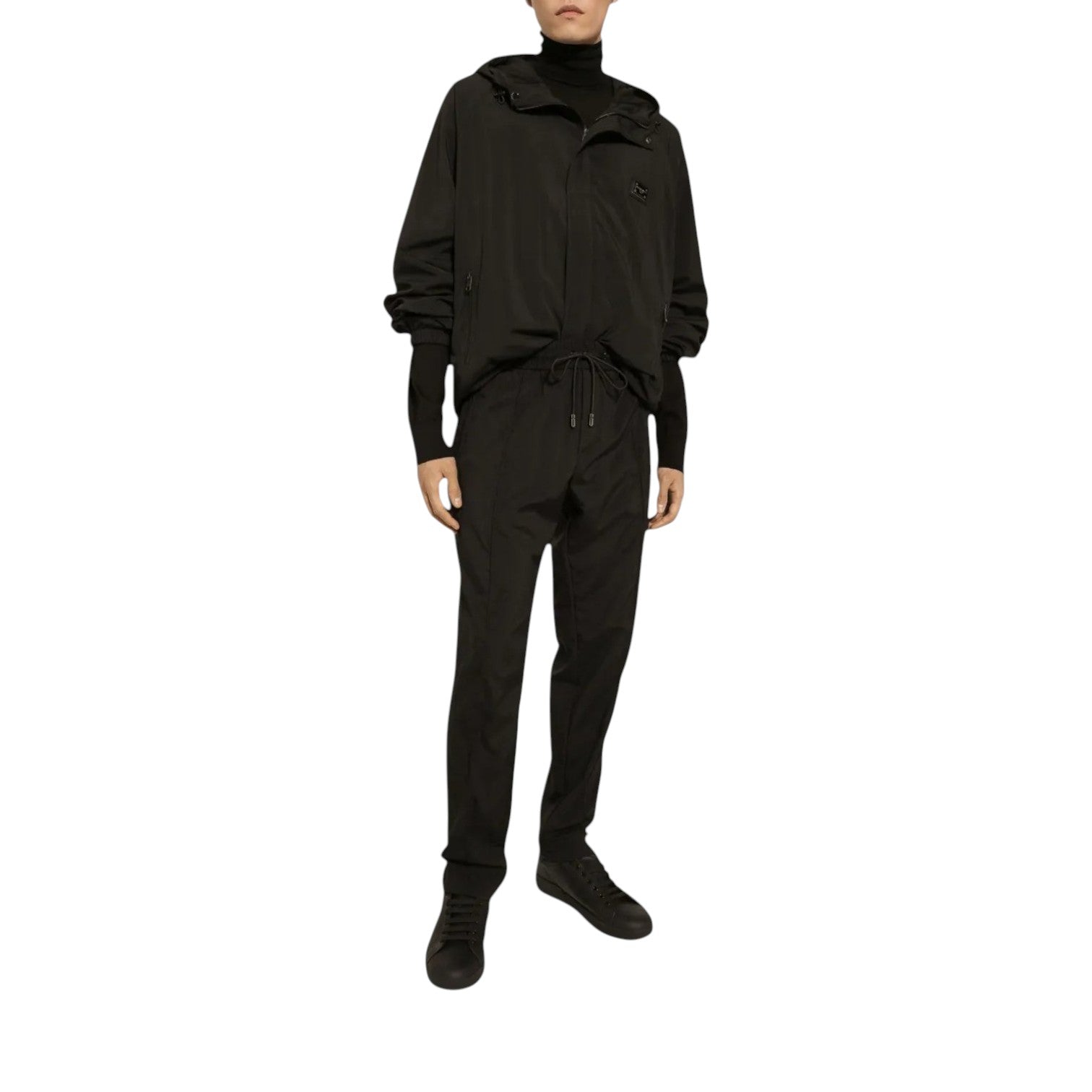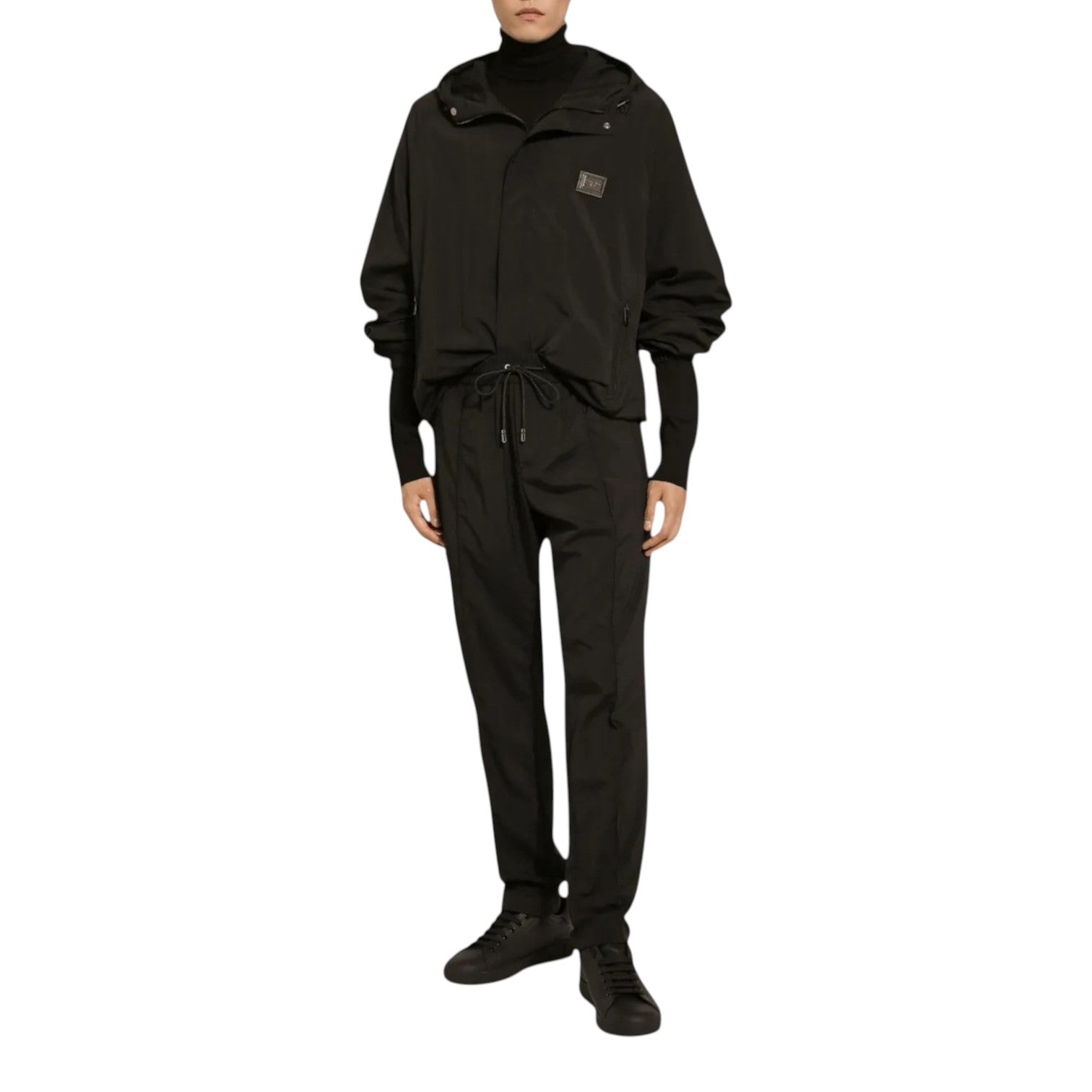 DOLCE & GABBANA LOGO-PLAQUE HOODED BLACK NYLON TRACKSUIT SET