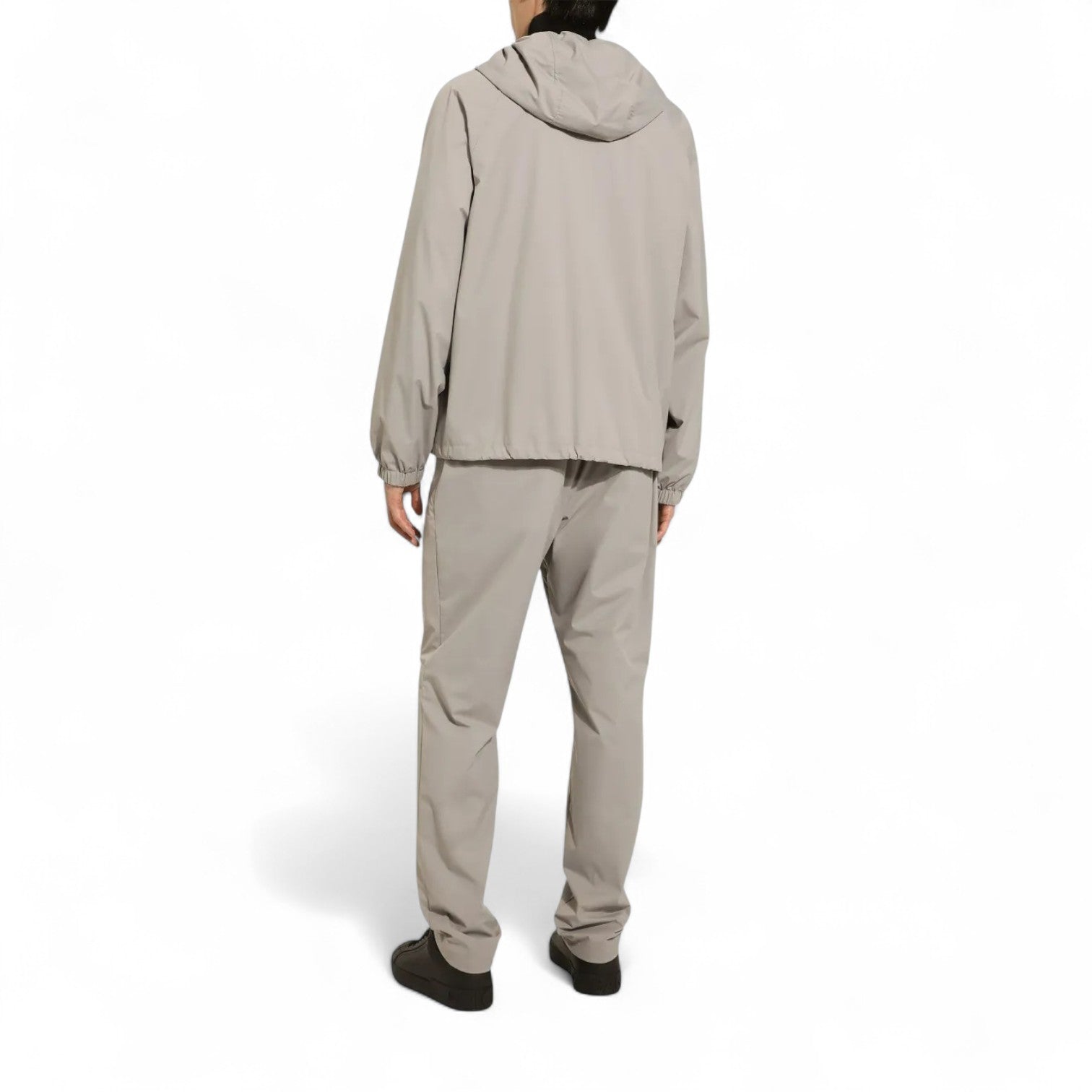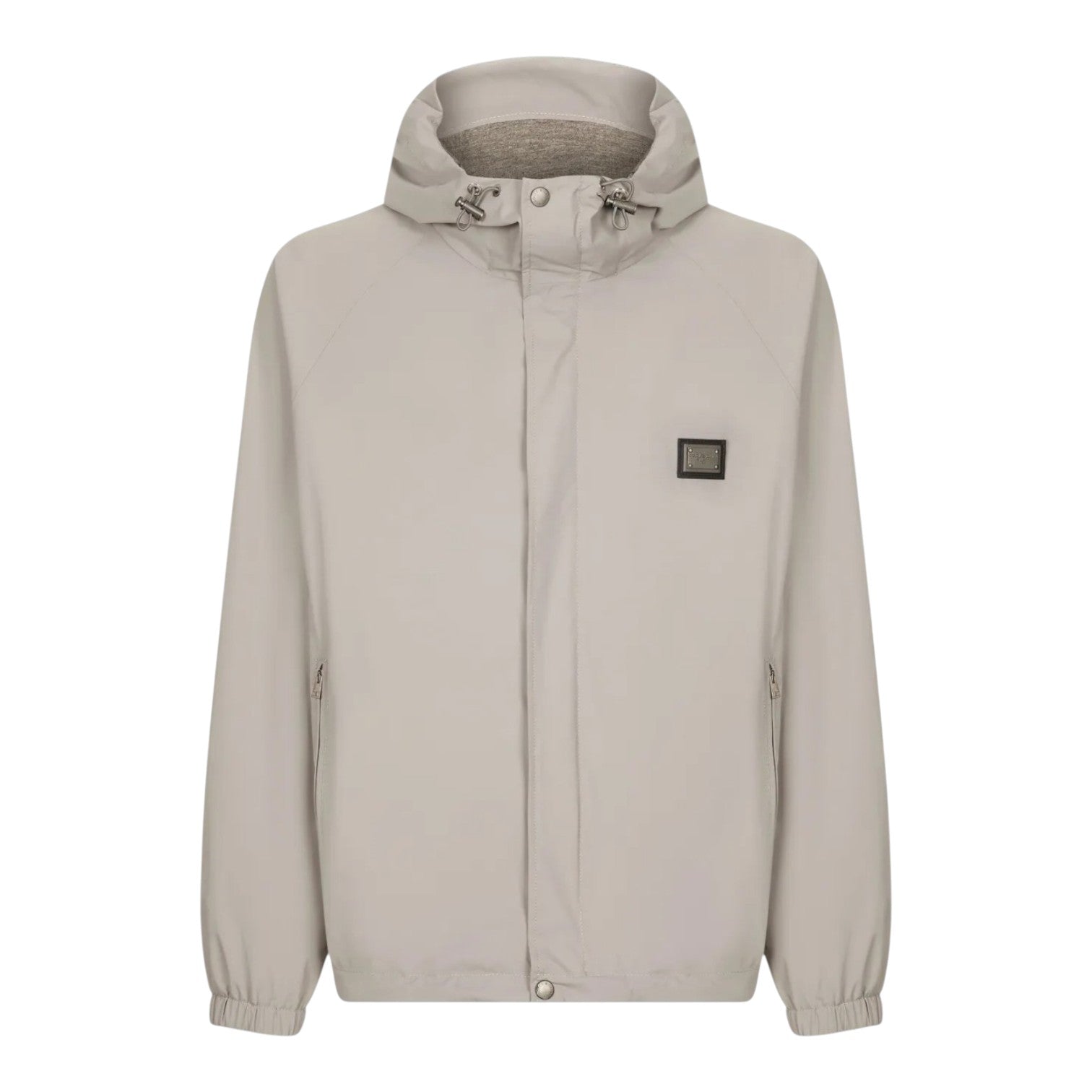 DOLCE & GABBANA LOGO-PLAQUE HOODED GREY NYLON TRACKSUIT SET