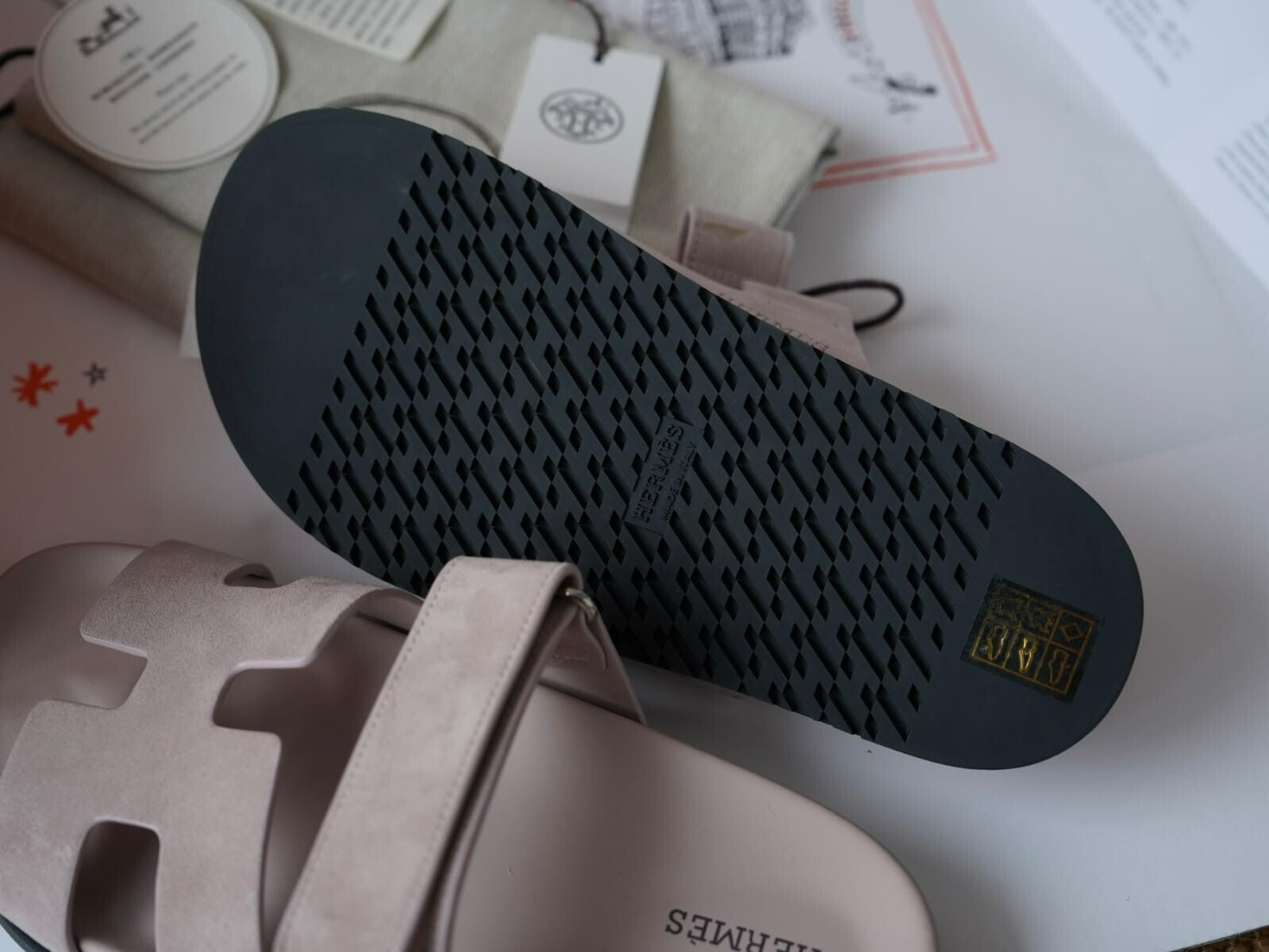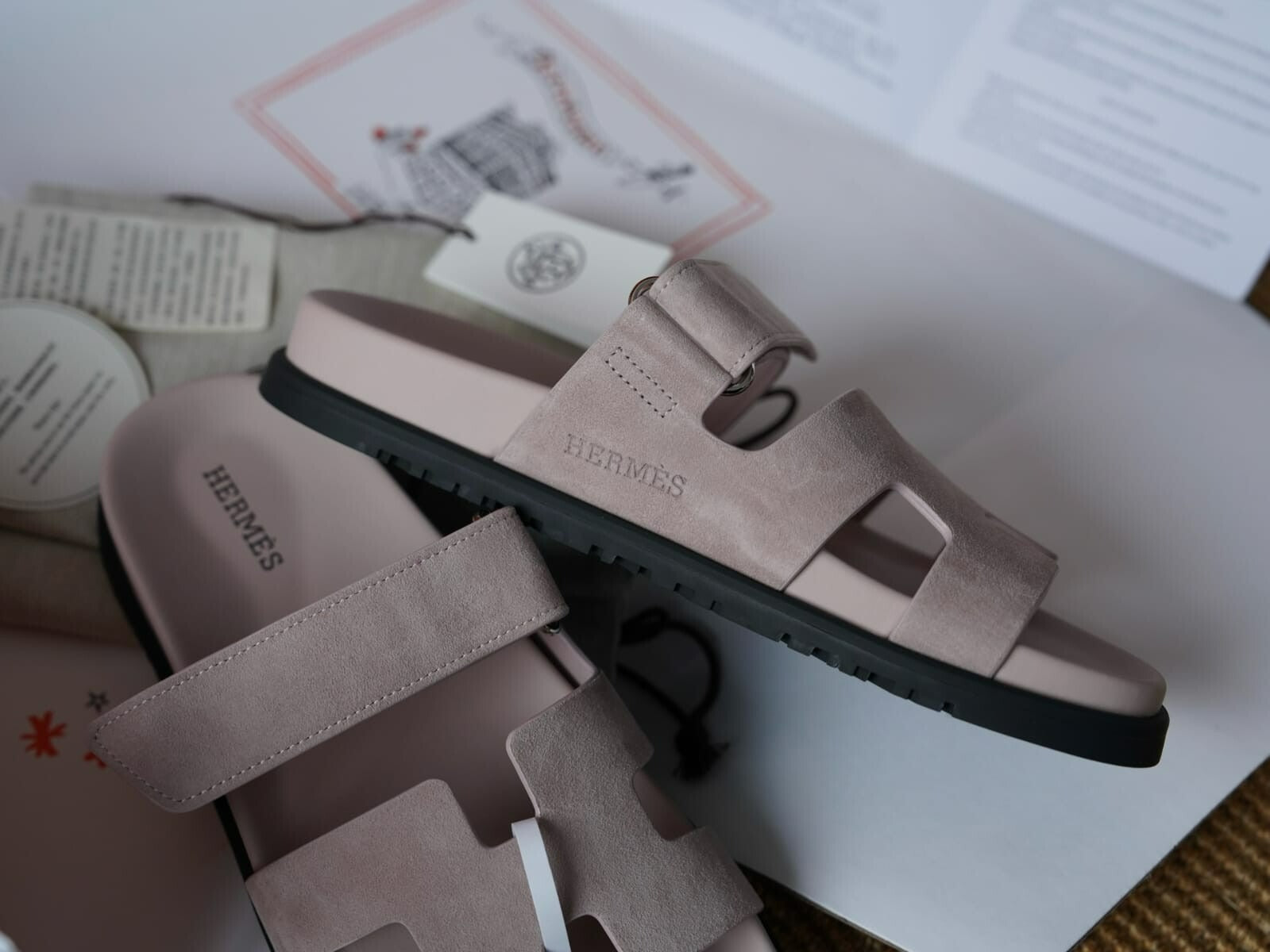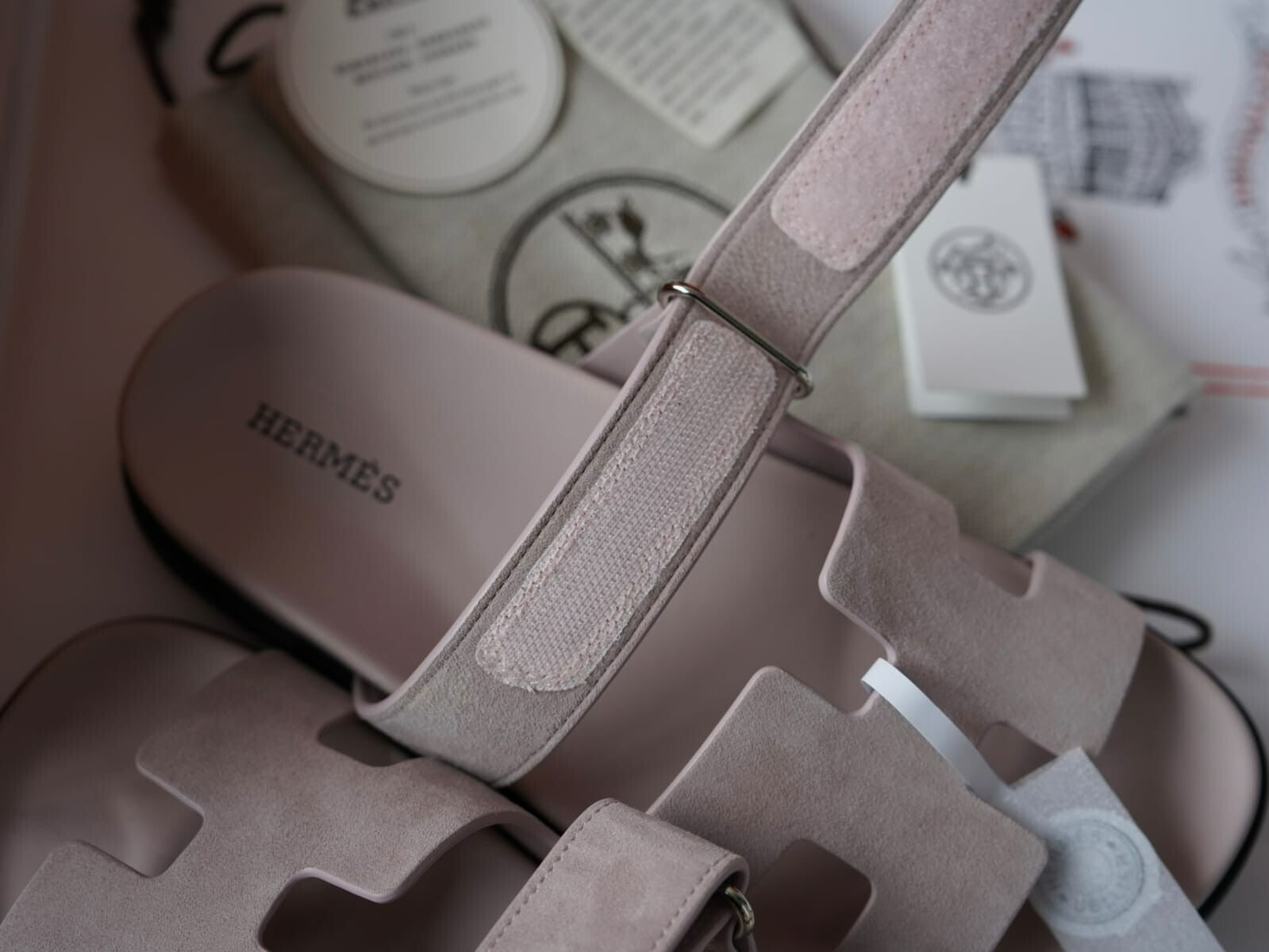 HERMES NUDE PINK SUEDE GOATSKIN WOMEN CHYPRE SANDALS