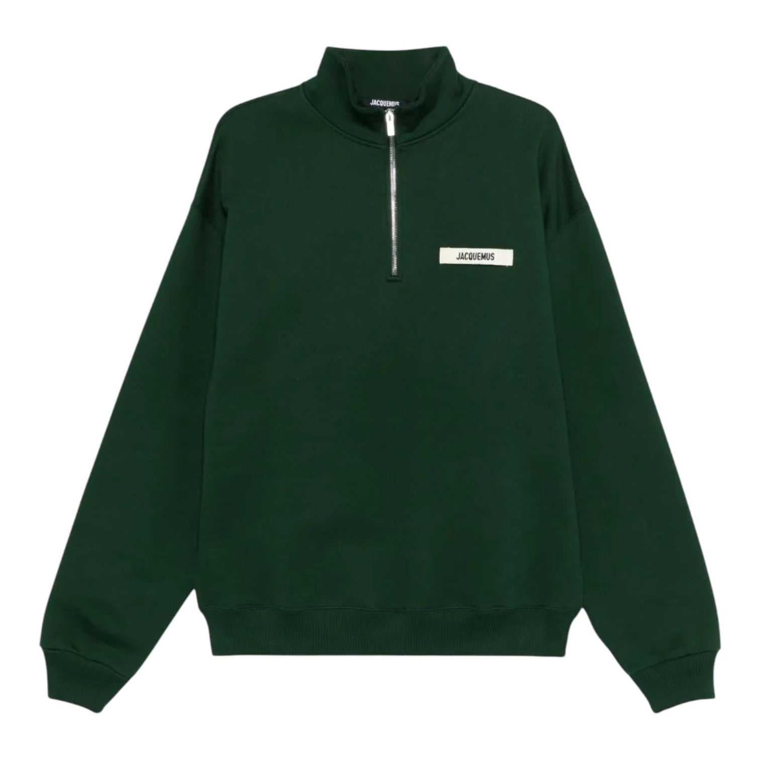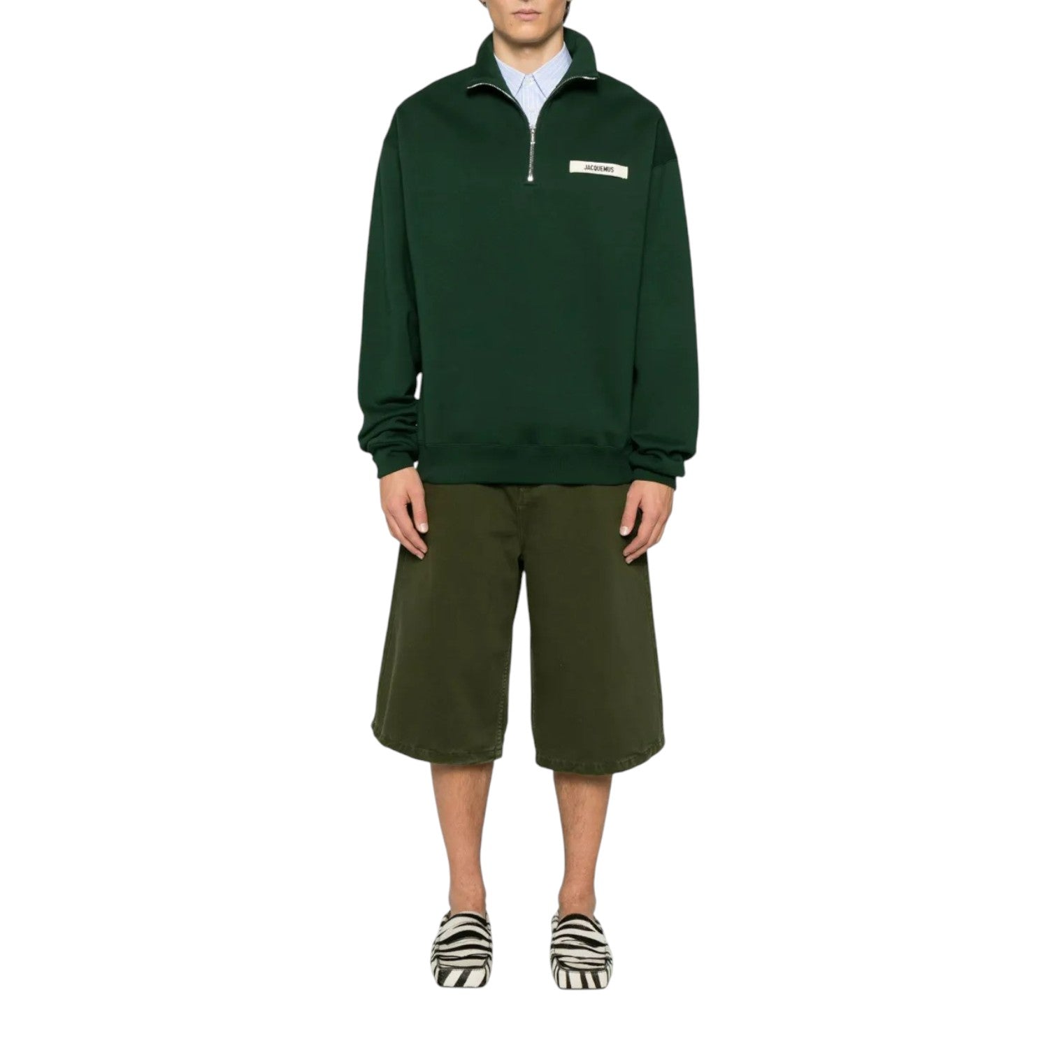 JACQUEMUS THE GROS GRAIN ZIPPED-ROLLNECK GREEN SWEATSHIRT