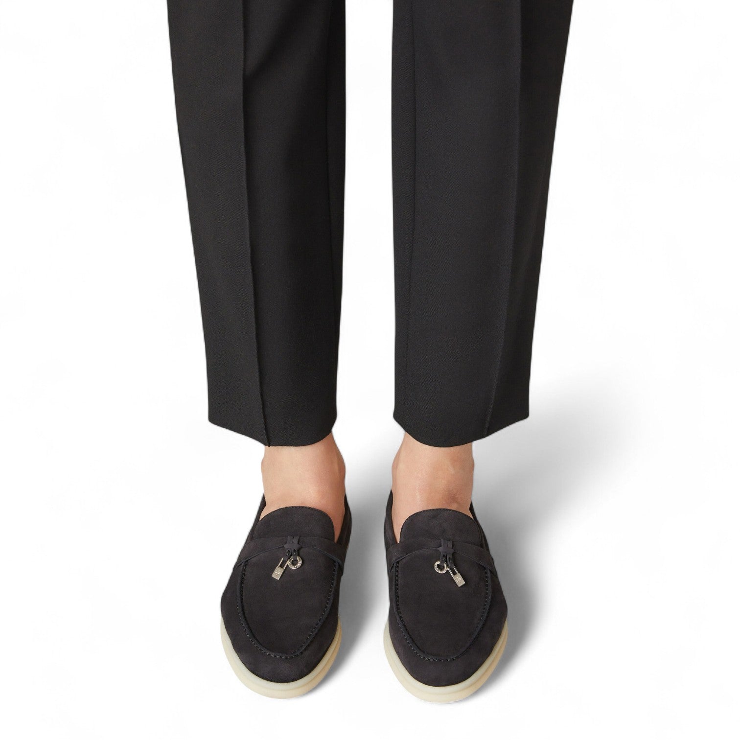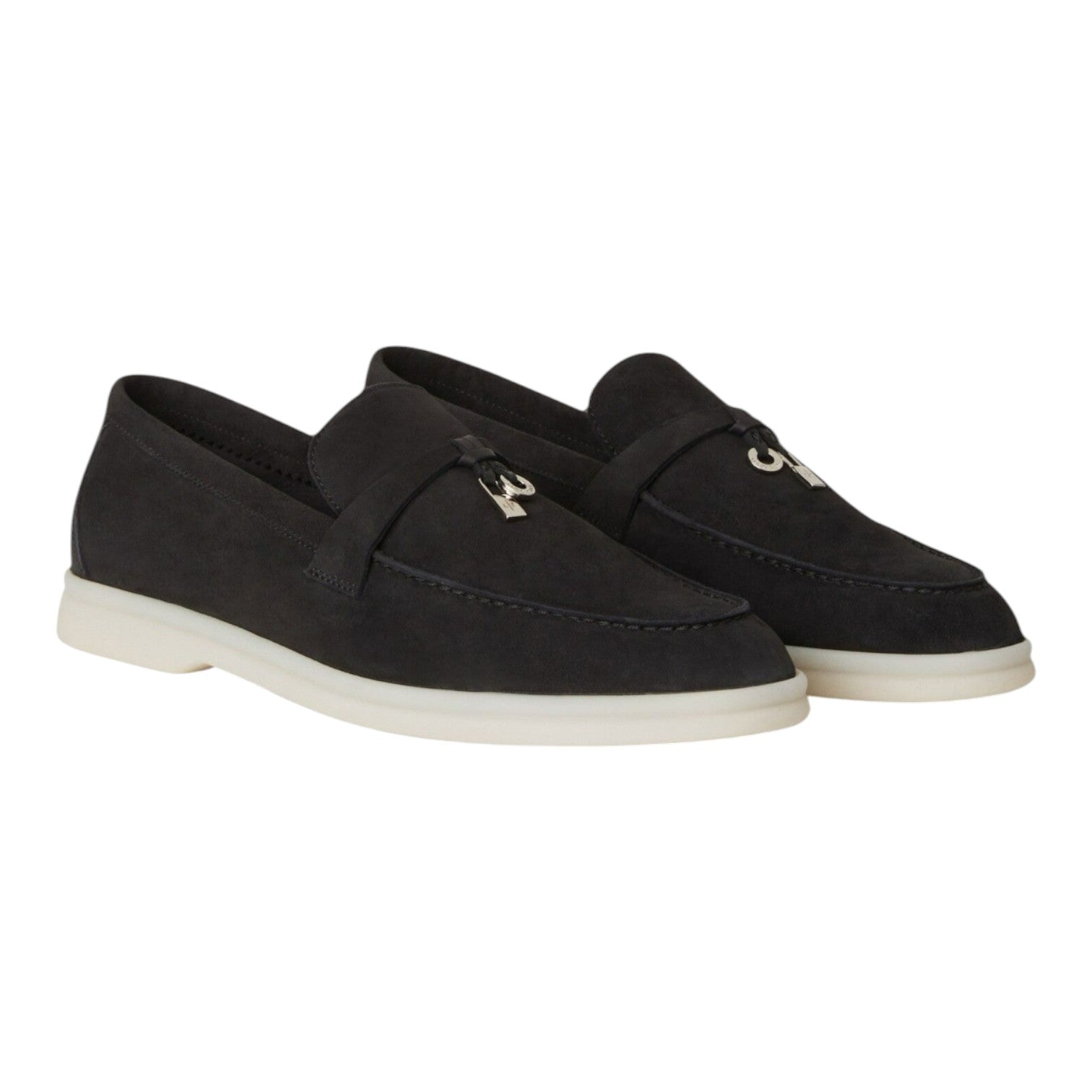 LORO PIANA SUMMER CHARMS WALK SUEDE WOMEN BLACK LOAFER