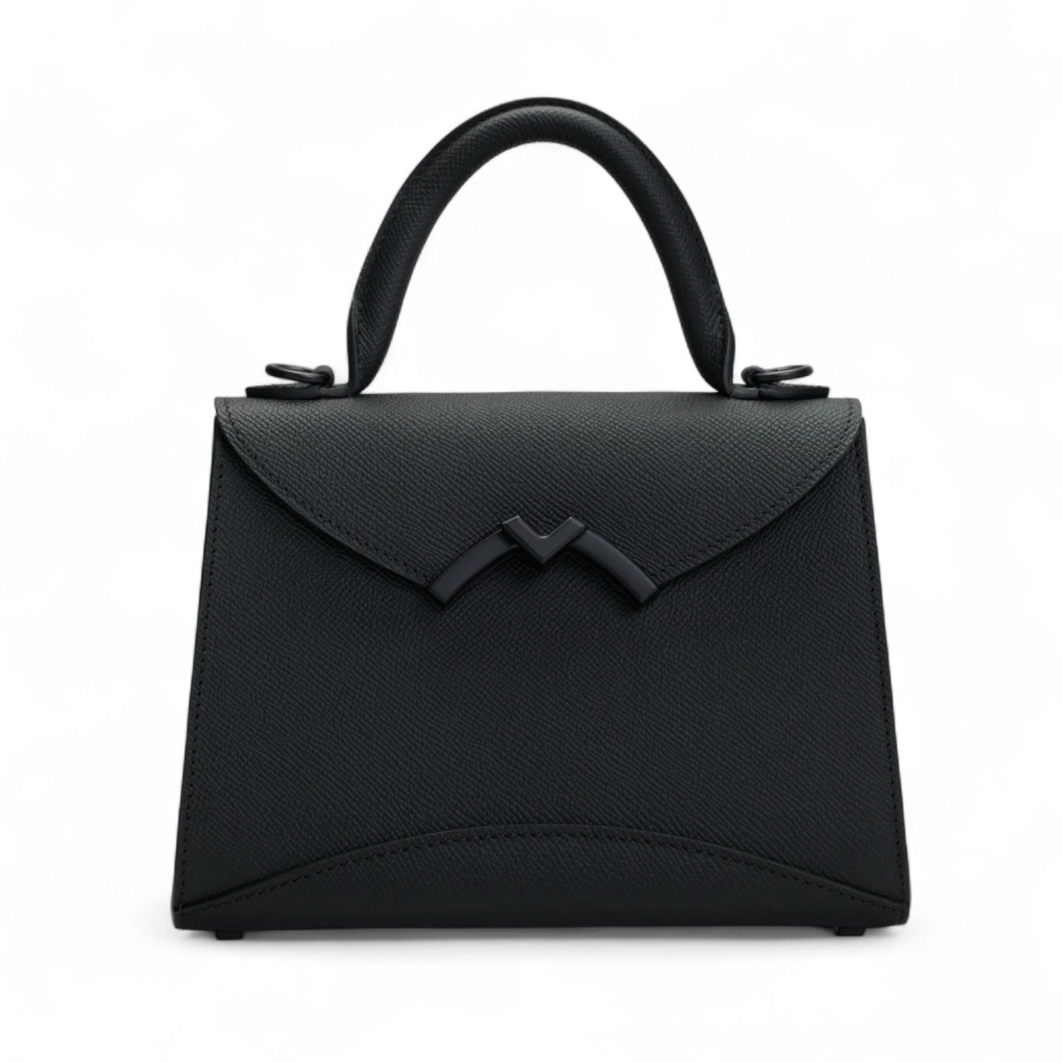 Echoing the curved, sleek lines of Moynat's historic Limousine Trunk, the Gabrielle bag is a discreet update to a signature shape of the Maison and a parallel of the city of Paris. Embellished with the distinct, M-shaped twist lock clasp, this timeless top handle bag with a removable strap is heightened by modern elements, such as full grain leather finishing and a structured, poised silhouette.