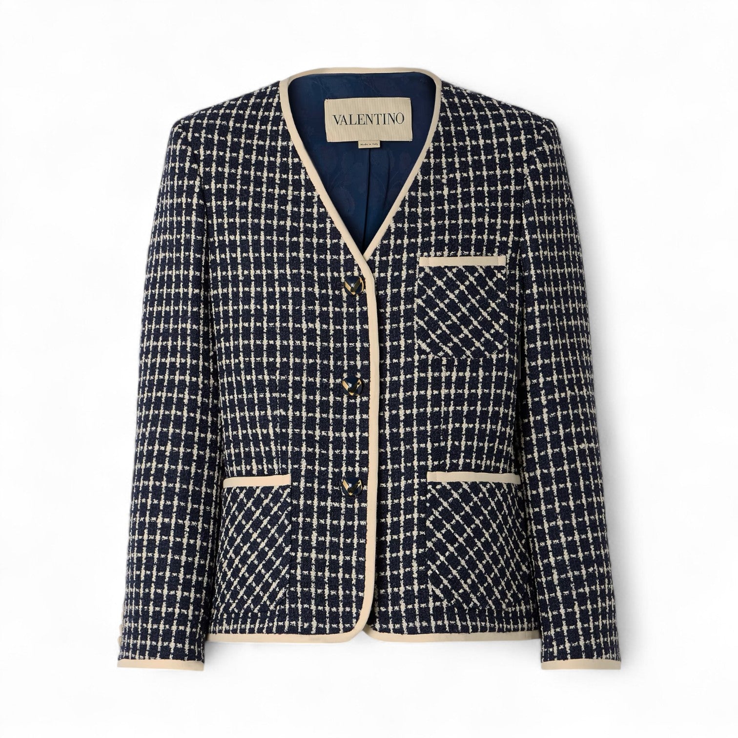 VALENTINO CHECKED WOOL-BLEND TWEED WOMEN BLUE JACKET